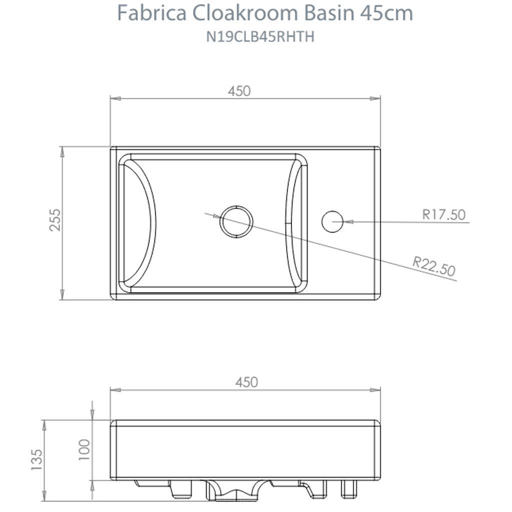 HIB Fabrica 450mm Cloakroom Basin, White - N19CLB45RHTH